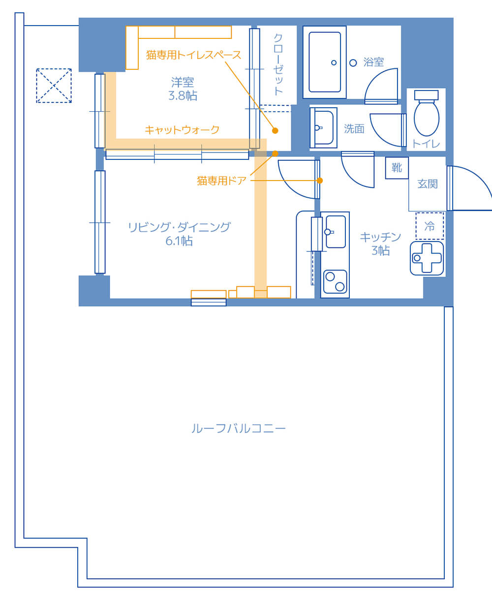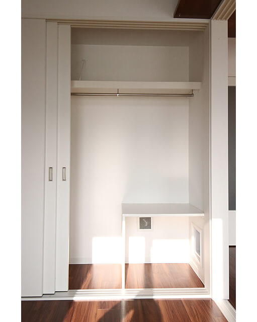 洋室の大容量クローゼットの一角には猫ちゃん用トイレスペースあります。