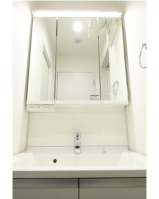• 収納力に優れた三面鏡タイプの洗面台を完備。