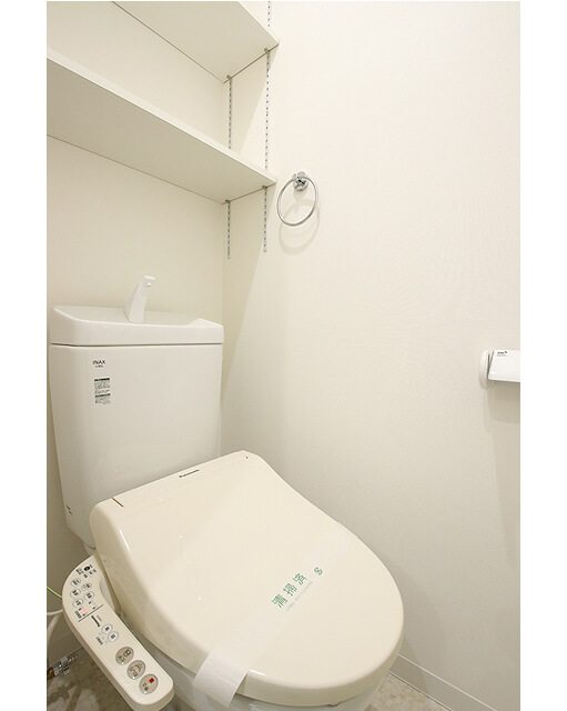 • 白を基調とした清潔感のある温水洗浄便座付トイレ。