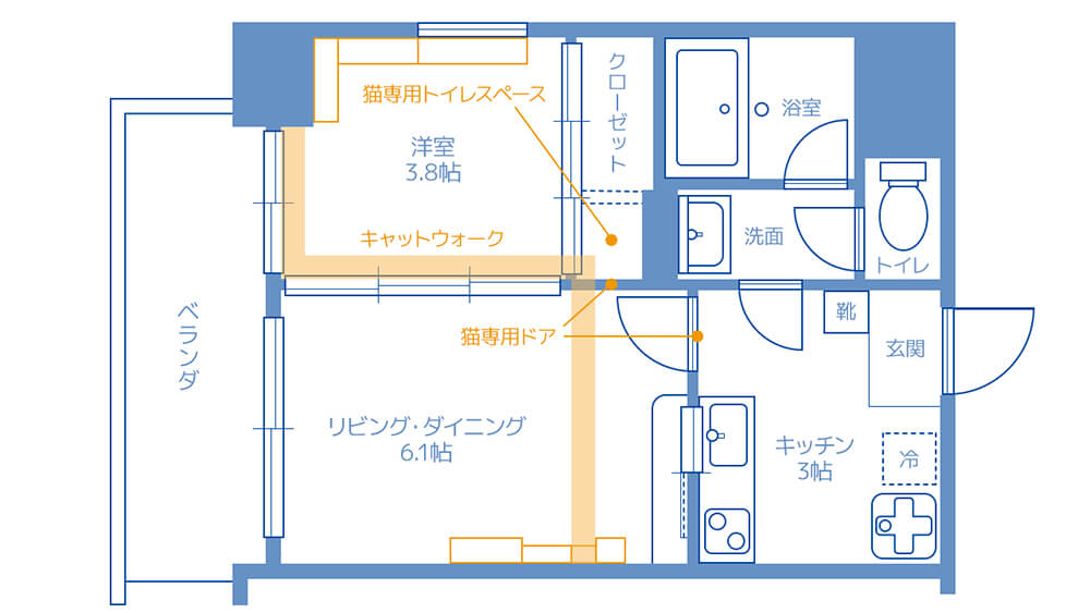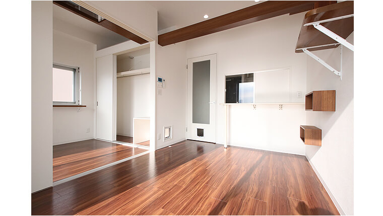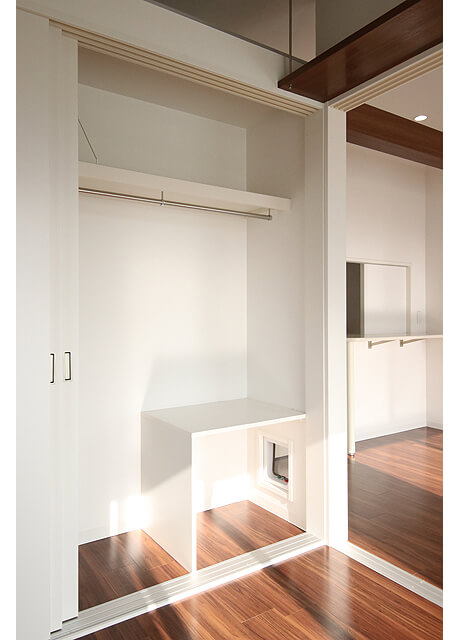 洋室の大容量クローゼットの一角には猫ちゃん用トイレスペースあります。