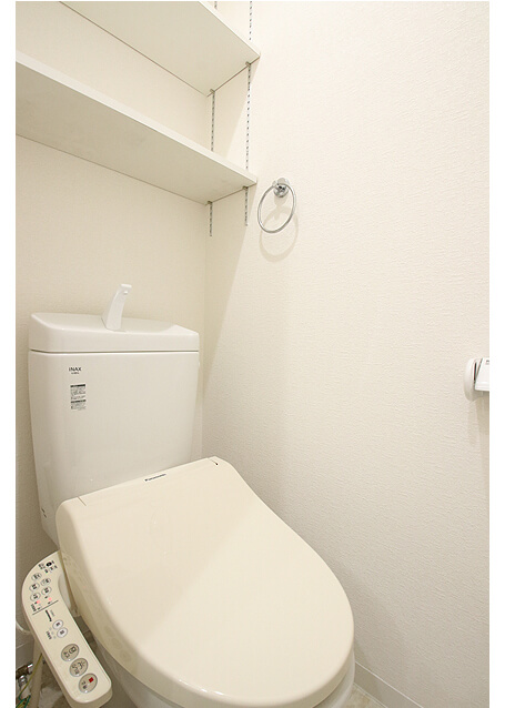 白を基調とした清潔感のある温水洗浄便座付トイレ。