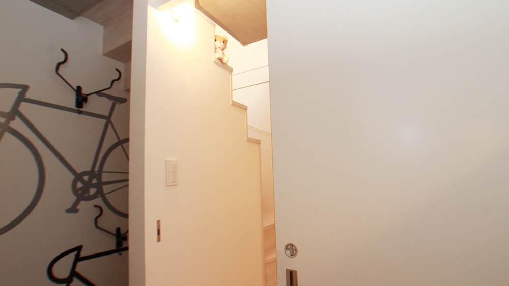 自転車を置けるスペース、そして脱走防止扉も完備ですにゃ